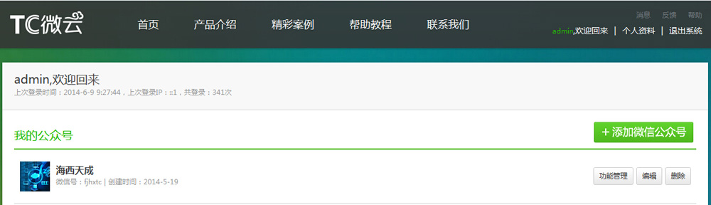 TC微(wēi)雲(天成微(wēi)信營銷管理(lǐ)平台)是(shì)我司自(zì)主研發的(de)微(wēi)信管理(lǐ)平台,平台應用(yòngβ)功能(néng)經我司技(jì)術(shù)團體(tǐ)進行(xíng)多(duō)次升級,目前完全滿足不(bù)同行(xíng)業(yè)客戶的(de)σ需求。