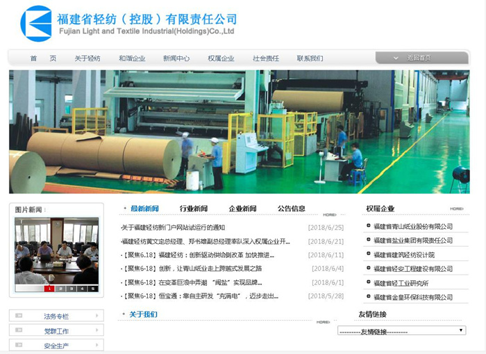 福建輕紡新網站(zhàn)由福建省力天網絡科技股份有限公司建設打造,網站(zhàn)采用(yòng)目前先進、成熟的(de)HTML5技(jì)術(shù),具備更好(hǎo•)的(de)安全性、穩定性、兼容性、可(kě)維護性和(hé)可(kě)擴展性,并基于新的(de)企業(yè)視(shì)覺識别系統對(duì)網站(zhàn)的(de)頁面視(sh→ì)覺和(hé)風(fēng)格布局進行(xíng)重新設計(jì)。