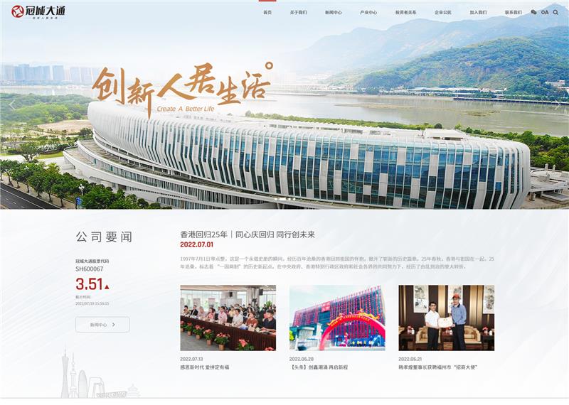 冠城(chéng)大(dà)通(tōng)股份有(yǒu)限公司是(shì)一(yī)家(jiā)曆史悠久、實£力雄厚的(de)綜合性上(shàng)市(shì)公司,股票(piào)代碼SH600067。公司主營業(yè)務為(wèi)房(fáng)地(dì)産開(kāi)發、電(diàn)磁線制(zhì)♦造與銷售,以及锂電(diàn)池電(diàn)解液添加劑的(de)生(shēng)産經營,并涉足金(jīn)融、和(hé)健康養生(shēng)等領域。公司連續多(duΩō)年(nián)榮獲福建企業(yè)百強,福建民(mín)營企業(yè)百強等稱号。