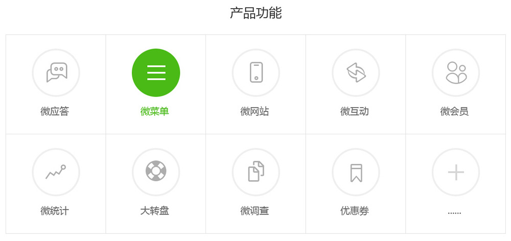 TC微(wēi)雲的(de)強大(dà)功能(néng),在同一(yī)管理(lǐ)平台上(shàng)實現(xiàn)多(duō)個(gèλ)微(wēi)信賬号管理(lǐ),用(yòng)戶互動性強,具有(yǒu)實時(shí)在線應答(dá),具體(tǐ)功能(né¥ng)有(yǒu):微(wēi)菜單、微(wēi)網站(zhàn)、微(wēi)互動、微(wēi)會(huì)員(yuán)、微(wēi)統計(jì)、大(dà)轉盤、微(wēi)調查、優惠≠券等功能(néng)。