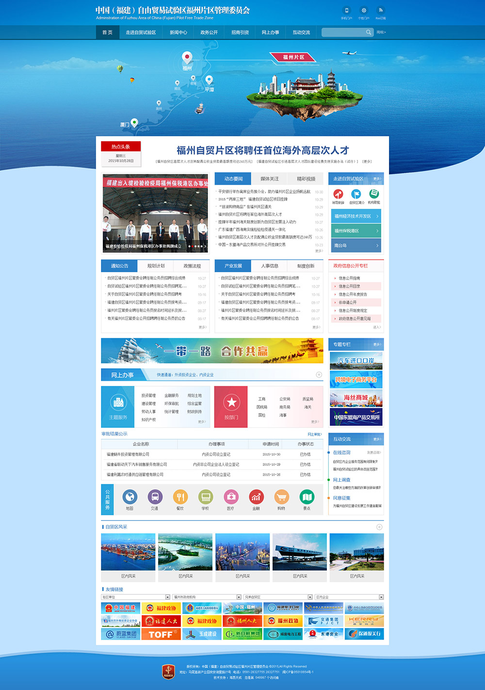 由海(hǎi)西(xī)天成制(zhì)作(zuò)的(de)“中國(guó)(福建)自(zì)由貿易實驗區(qū)福州片區(qū)官網”www.fzftz.gov.cn近(jìn)日(rì)正式上(shàng)線。