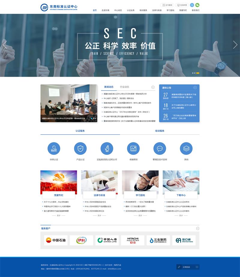 海(hǎi)西(xī)天成已第三次為(wèi)福建東(dōng)南(nán)标準認證中心(http://www.fjsec.com)官網進行(xíng)改版服務,此次全新改版後的(de)官網将實現(xiàn)“全站(zhàn)響應式”,還(hái)增加了(le)微(wēi)信公衆号相(xiàng)結合,訪問(wèn)方式更加方便。
